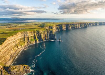 Begin with Mass in Cork, then travel north to County Clare for the dramatic Cliffs of Moher, towering over the Atlantic with sweeping views to the Aran Islands. Continue through the West to Galway.